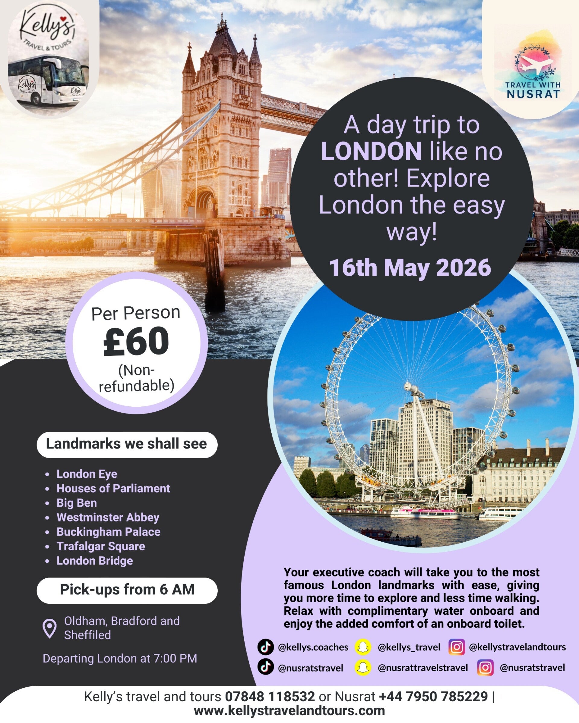 A full day tour of the City of London on 16th May 2026 Oldham and Bradford
